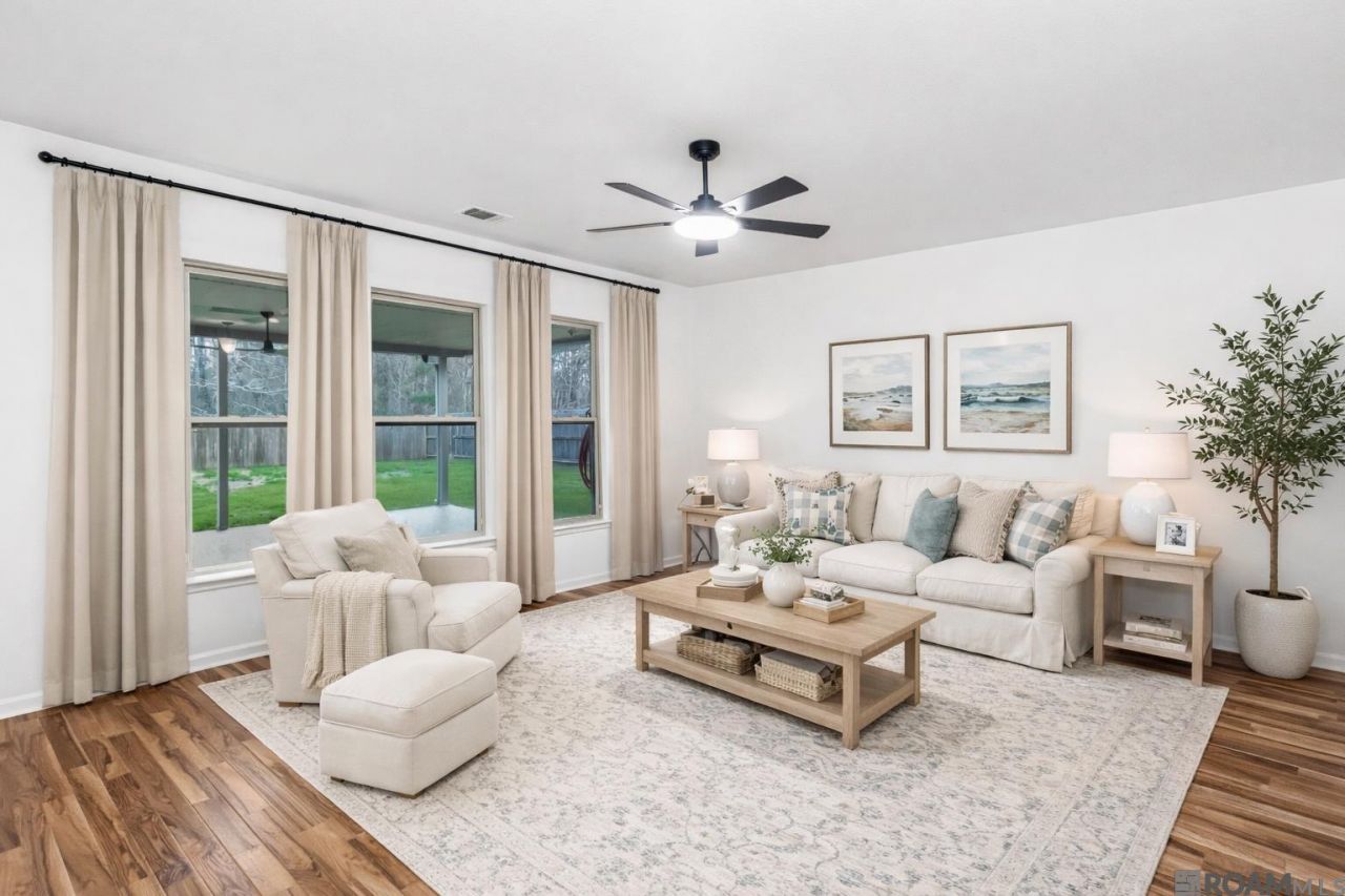 Welcome to this beautifully refreshed 4-bedroom, 2-bathroom home that perfectly blends modern style, comfort, and energy efficiency. Freshly painted and move-in ready, this home features hard flooring throughout, creating a sleek, contemporary look that's both elegant and easy to maintain. The desirable split floor plan offers added privacy, with the spacious primary suite thoughtfully separated from the additional bedrooms?perfect for families, guests, or even a dedicated home office. The open and inviting layout flows effortlessly from room to room, enhanced by updated lighting and stylish ceiling fans that add both comfort and character. Designed with efficiency in mind, the home includes tinted windows that provide extra privacy while helping keep the interior cool and energy costs down. A tankless hot water heater ensures endless hot water while offering long-term savings and everyday convenience. Step outside and discover a large back patio, ideal for entertaining, weekend BBQs, or simply relaxing while enjoying your own outdoor retreat. With thoughtful updates, functional design, and welcoming indoor-outdoor living, this home is the perfect combination of modern upgrades and everyday comfort?ready for you to move in and make it yours.