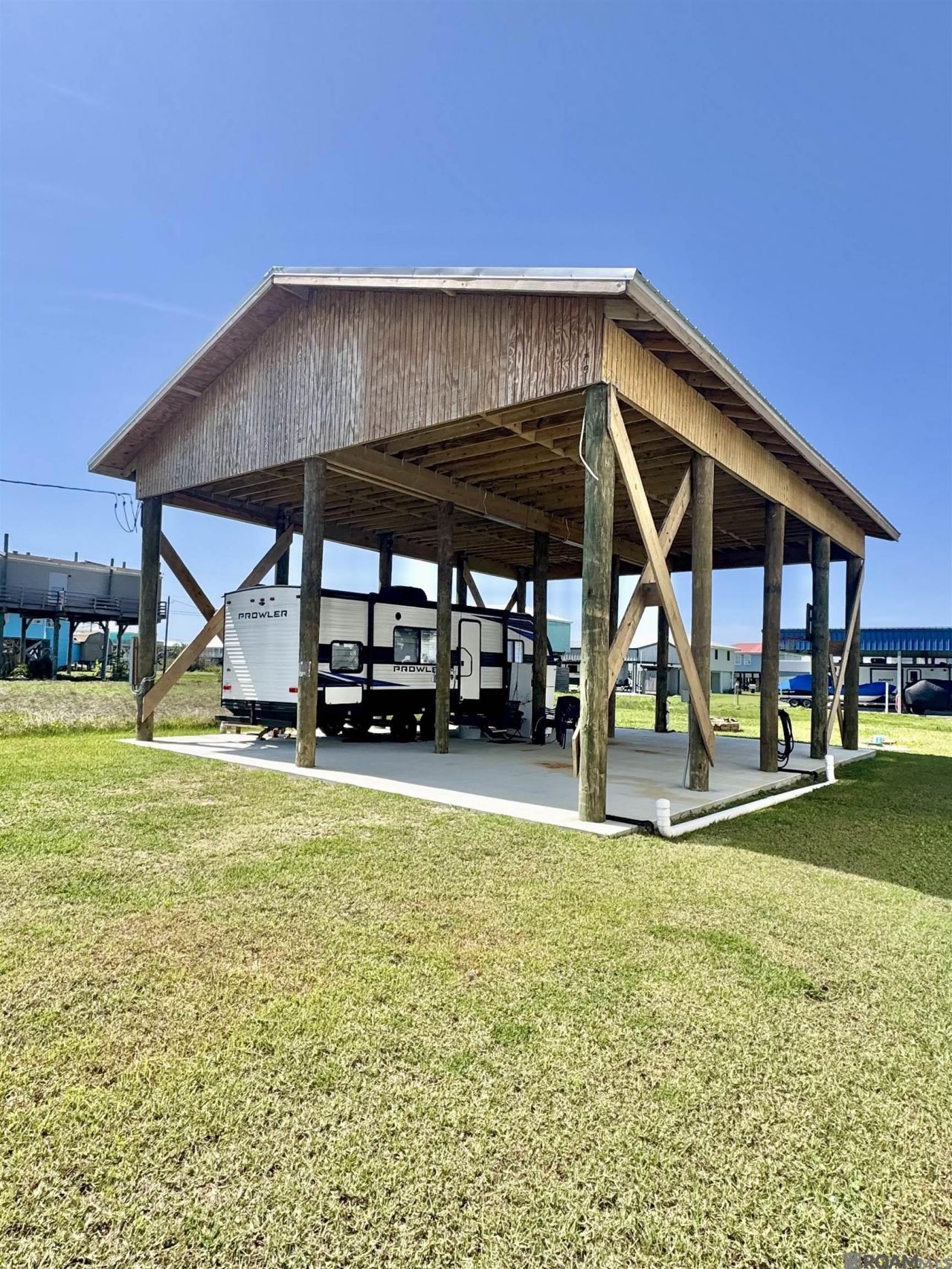 If you've been looking for a simple, ready-to-enjoy spot in Grand Isle, this one is set up and waiting. The property features a 32' x 42' custom camper cover built about 1½ years ago, covering a large concrete pad designed for two RVs. The lot is already fully set up with 50-amp electrical service, water, and a sewer system that was installed about 1½ years ago, making it an easy, turnkey setup for weekends or extended stays. Located on LA Hwy 1 directly across from the beach and only about 400 feet from the Olive Street beach access, you can be on the sand in just minutes by foot, bike, or golf cart. One of the biggest advantages of an RV property in Grand Isle is flexibility. If a storm is approaching, you can move your camper inland and bring it back afterward, which also helps keep insurance costs much lower than a traditional camp. Even better, this property offers something extremely rare on the island ? it's the last permitted camper cover on Highway 1 frontage in Grand Isle. Spend your days surf fishing, boating, or chasing trout and redfish, and your evenings relaxing in the Gulf breeze. Whether you're looking for a fishing base, beach getaway, or a place to gather with friends and family, this property makes enjoying Grand Isle easy.